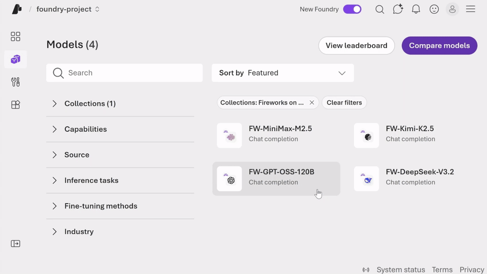 Daha yüksek performansa ihtiyaç duyulan açık modellerde çözümler mi arıyorsunuz? İşte Fireworks AI burada devreye giriyor! Üstelik Microsoft Foundry ile mükemmel bir uyum içinde çalışıyor; yani sadece hızlı sonuç almakla kalmıyorsunuz aynı zamanda bu çözümleri işletmenize özel hale getirebiliyorsunuz.